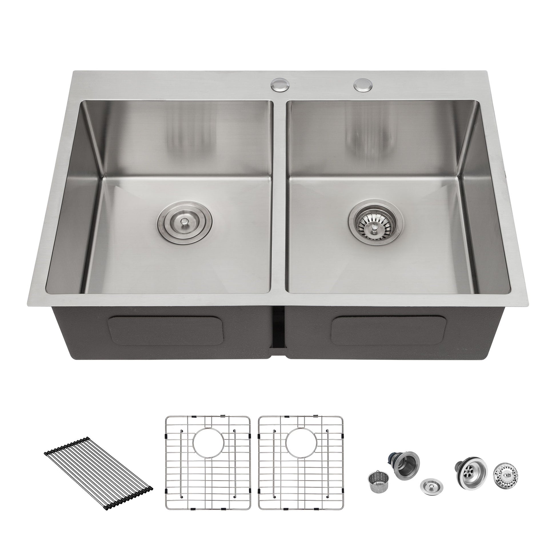 - [Double Bowl] Offers a 50/50 split double basin for versatile kitchen tasks.