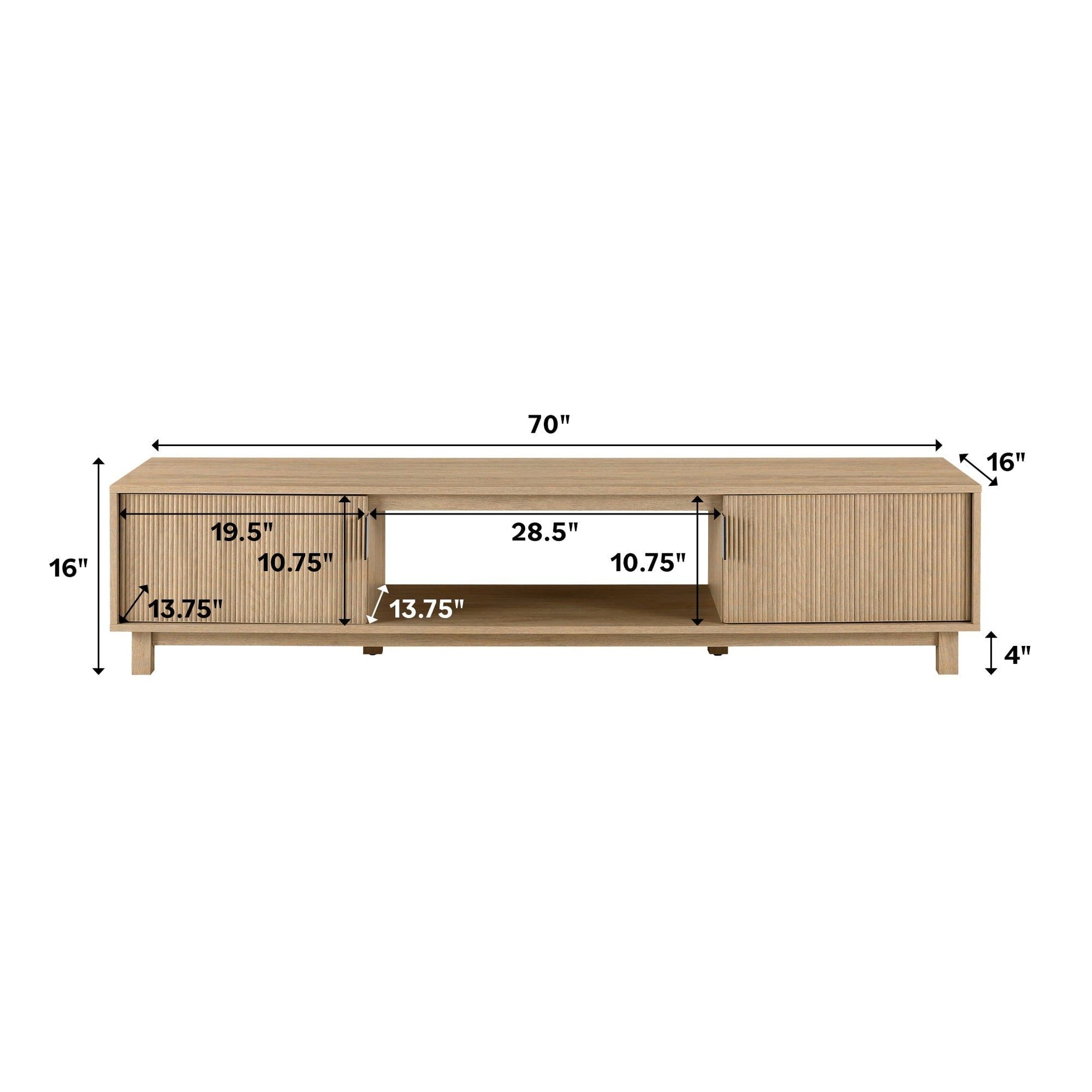 Modern Fluted Door Minimalist TV Stand For TVs Up To 80" - Coastal Oak