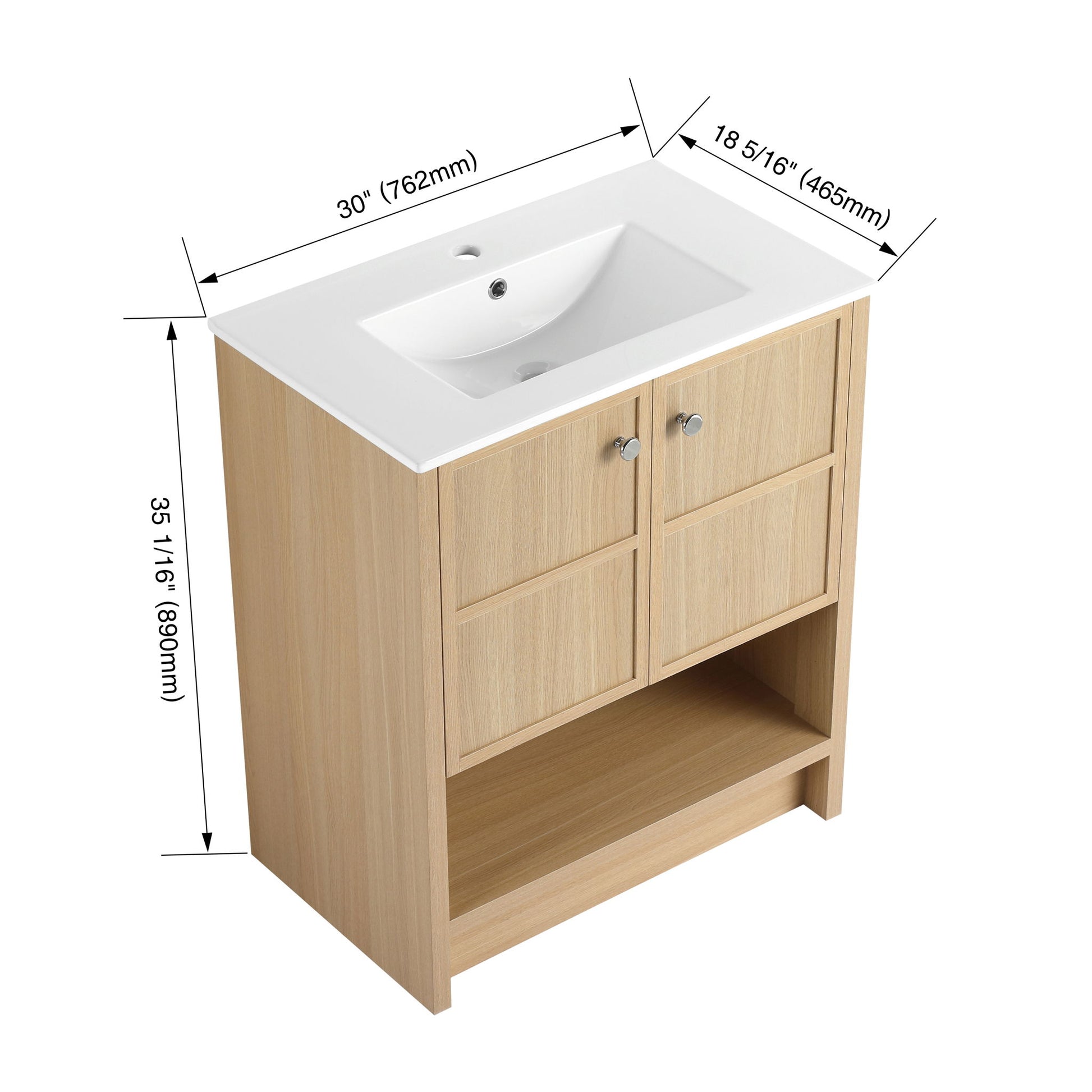 Modern 30" Freestanding Bathroom Vanity With Ceramic Sink And 2 Soft Closing Doors - Oak