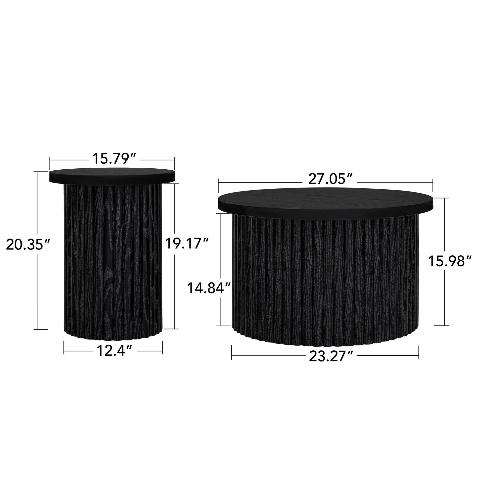 Coffee Table (Set of 2), Round Coffee Table, Modern Side Tables Accent End Table For Living Room - Black
