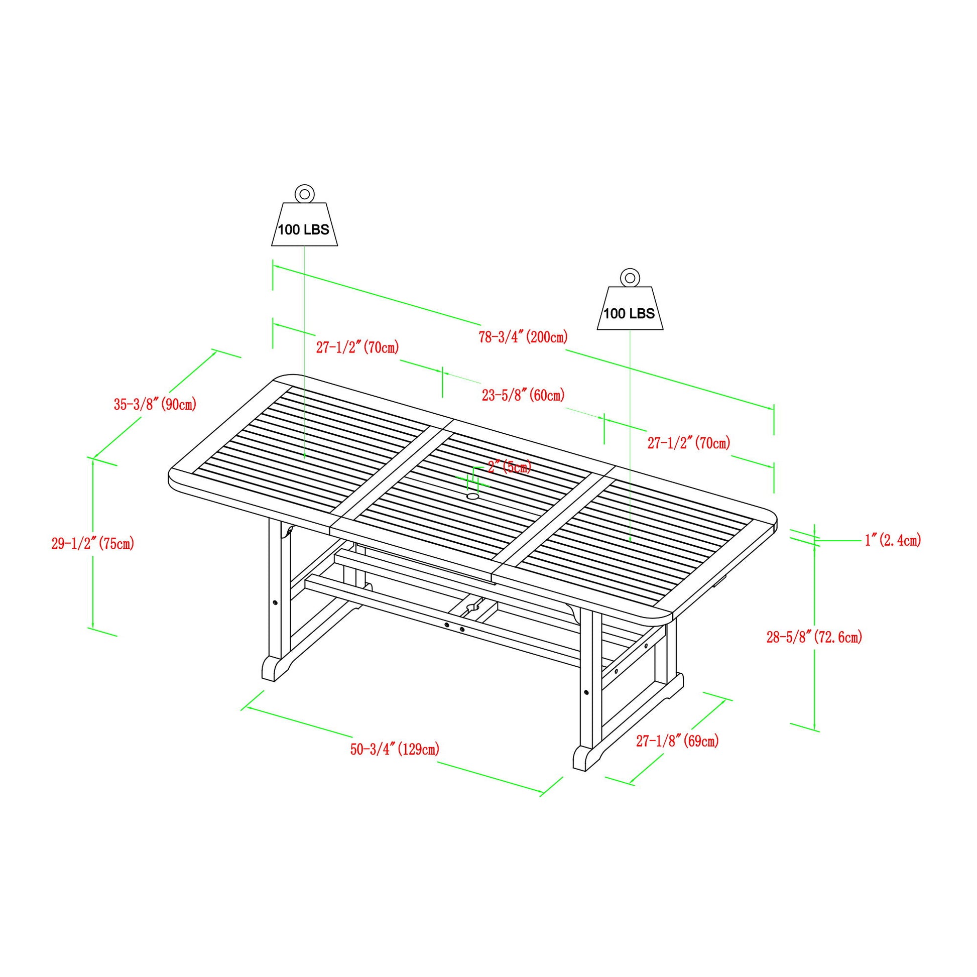 Modern Slat Top Solid Acacia Wood Butterfly Outoor Dining Table - Dark Brown