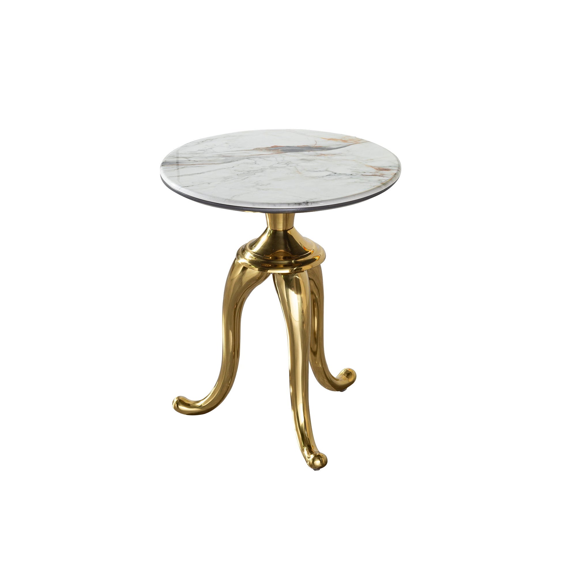 Modern Small Coffee Table With Microcrystalline Stone Top And Carbon Steel Legs - Gold