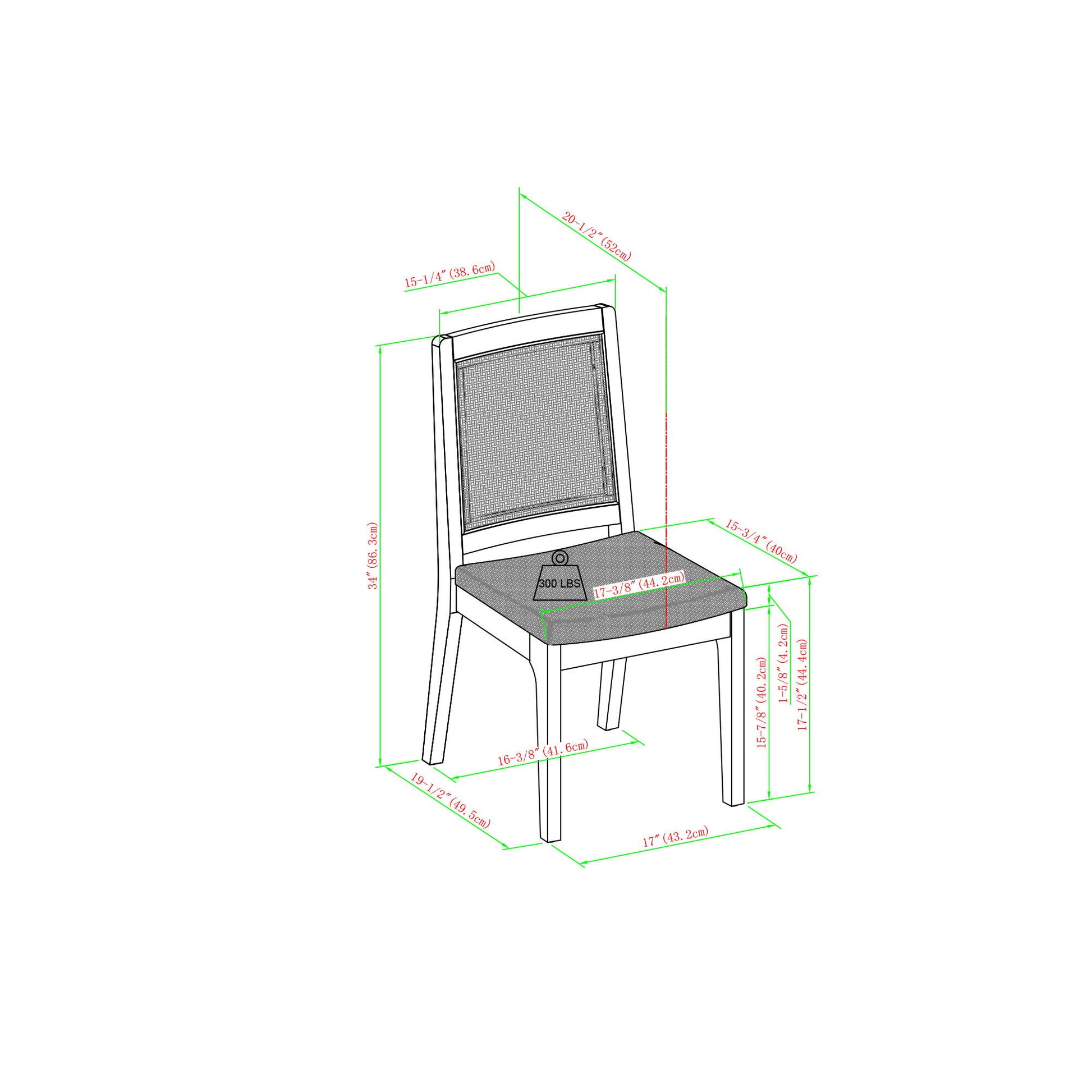 18.52"W x 22.12"D x 34.0"H - 16.0 lb