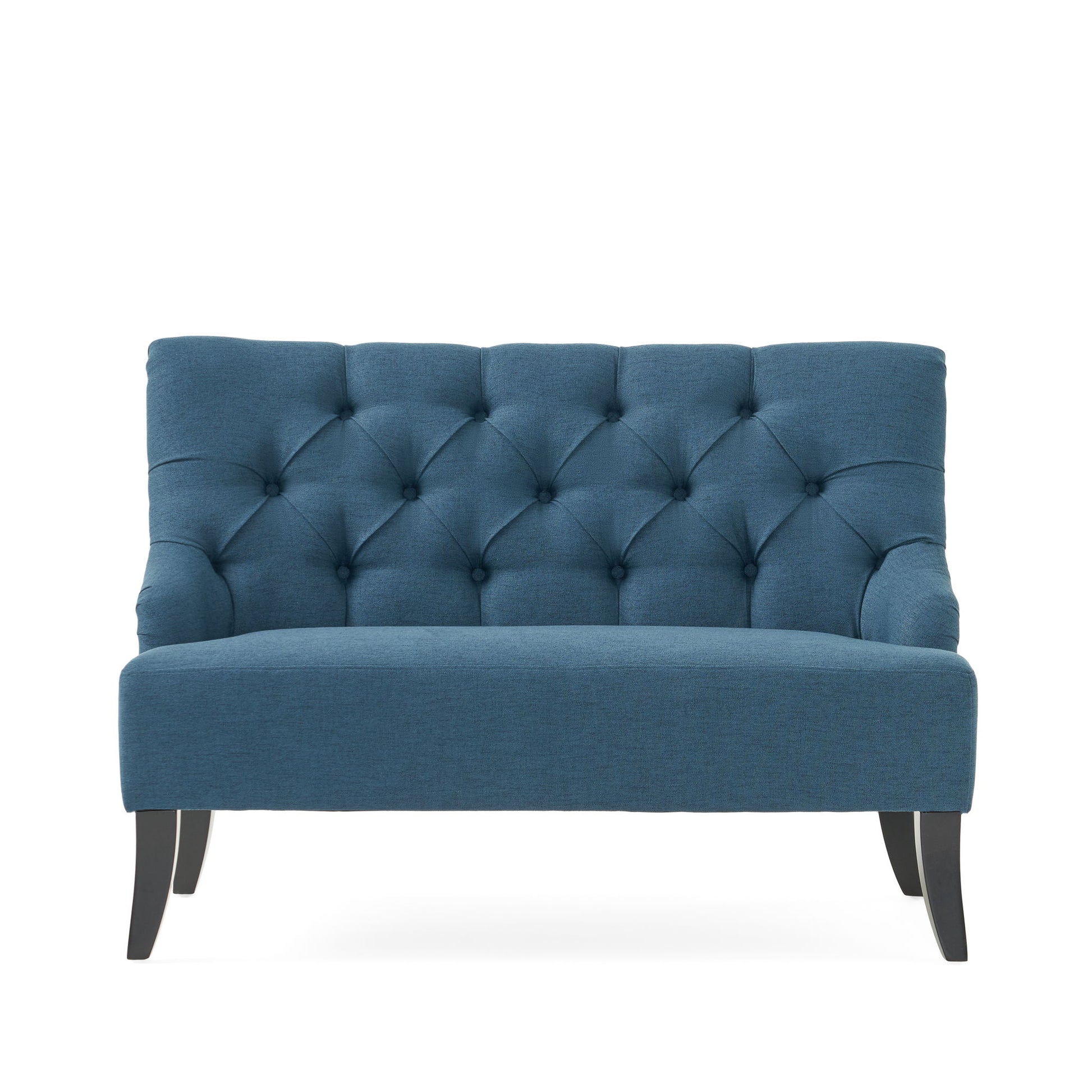Nicole - French Style Upholstered Loveseat With Tufted Backrest - Navy Blue