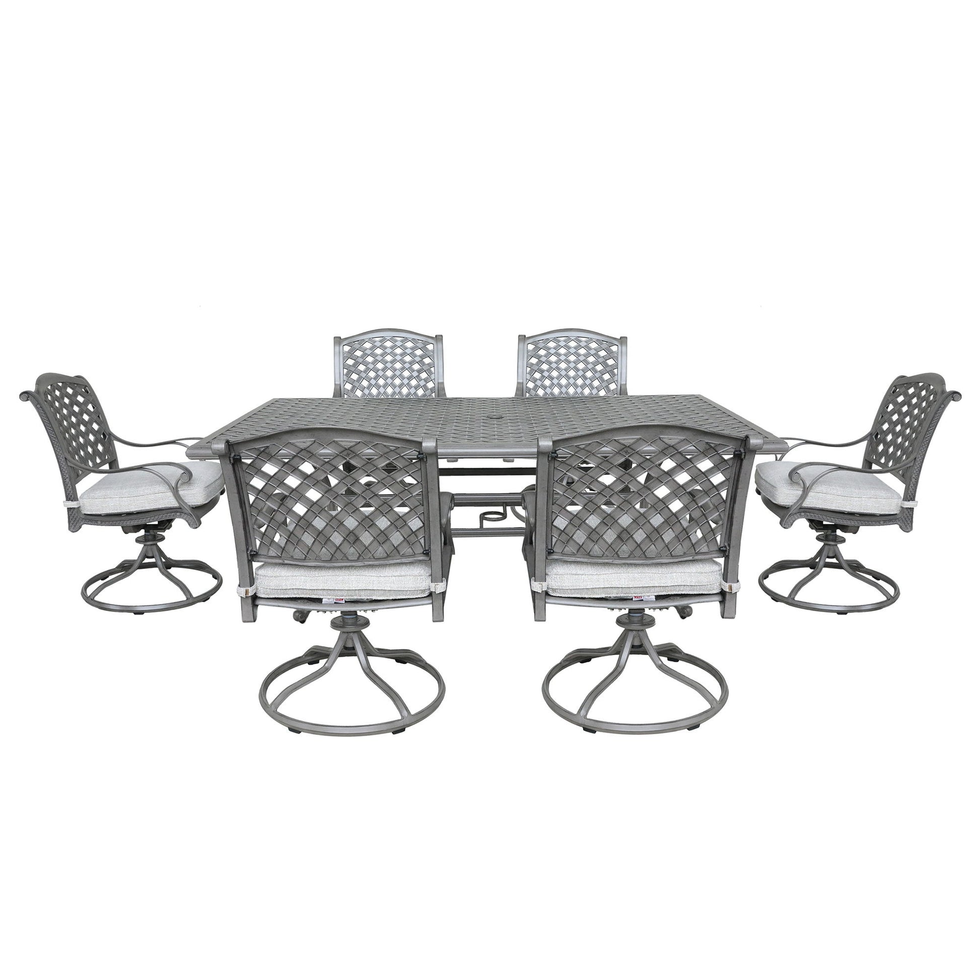 - Spacious 7-Piece Set: Includes swivel chairs and a rectangular table, providing ample seating for family and friends to enjoy outdoor meals and conversations.