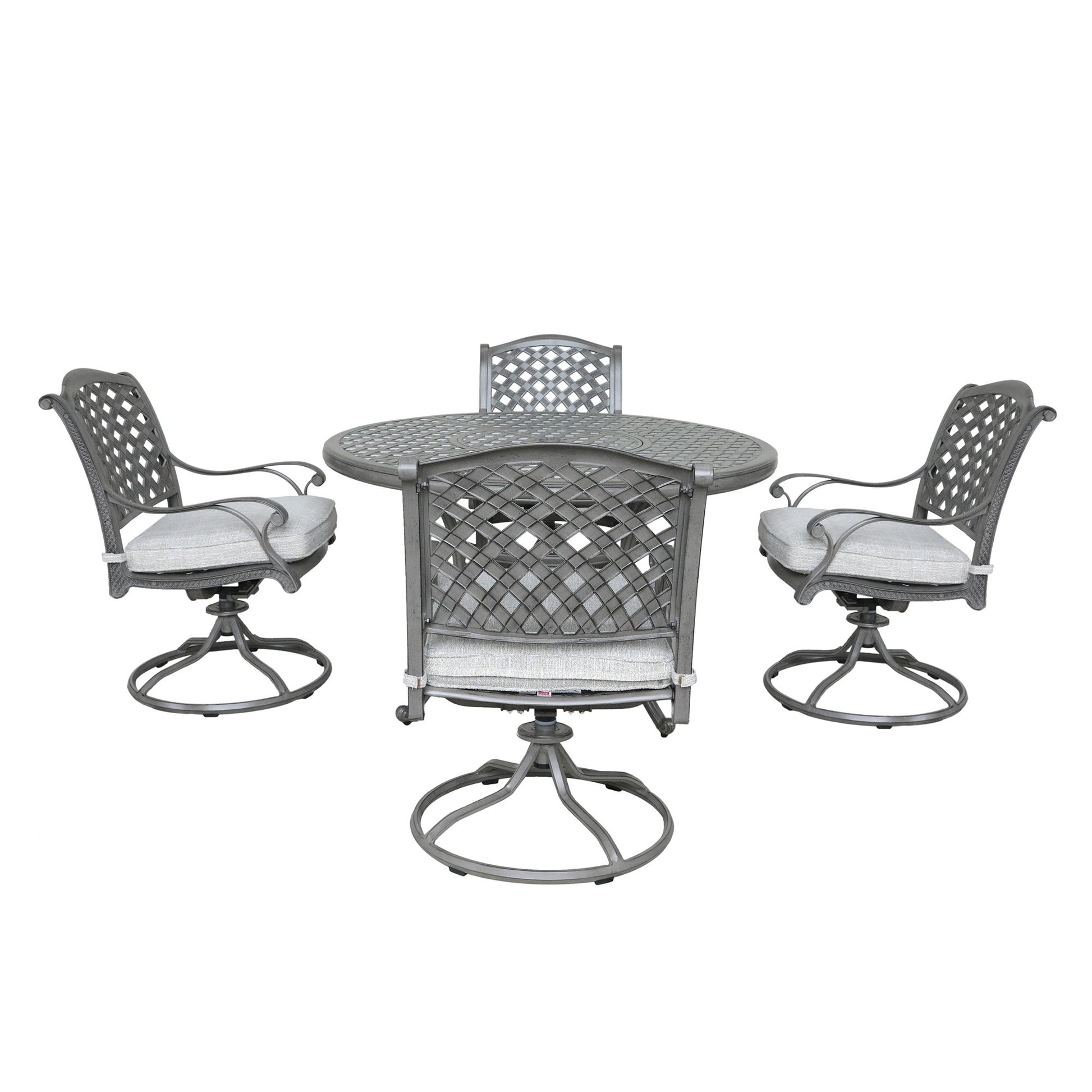 Outdoor 5 Piece Aluminum Dining Set With Cushion, Swivel And Rocking Chairs - Golden Gauze
