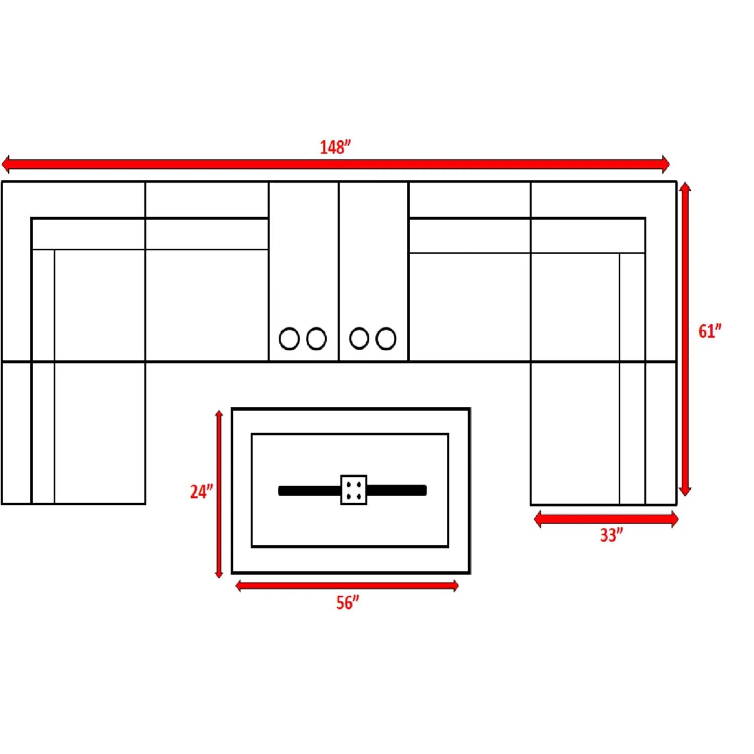 9 Piece Modular Seating Group With Ultra Soft Cushions & Concrete Fire Pit - Espresso