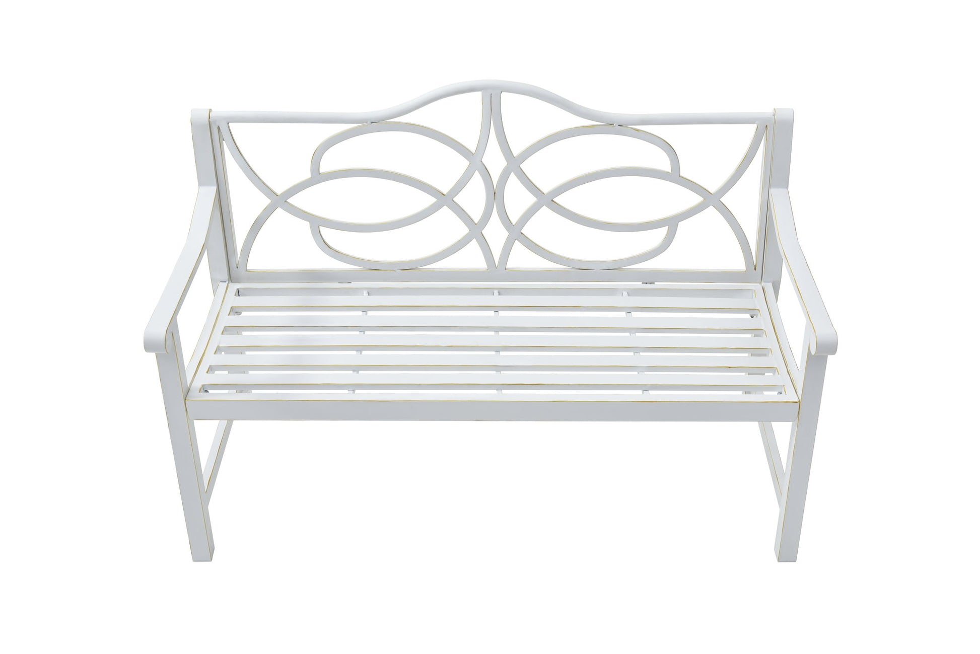 Outdoor Garden Patio Bench With Backrest And Armrest, Slatted Seat For Park, Yard & Porch, Balcony, Accommodates 2 - 3 People - White