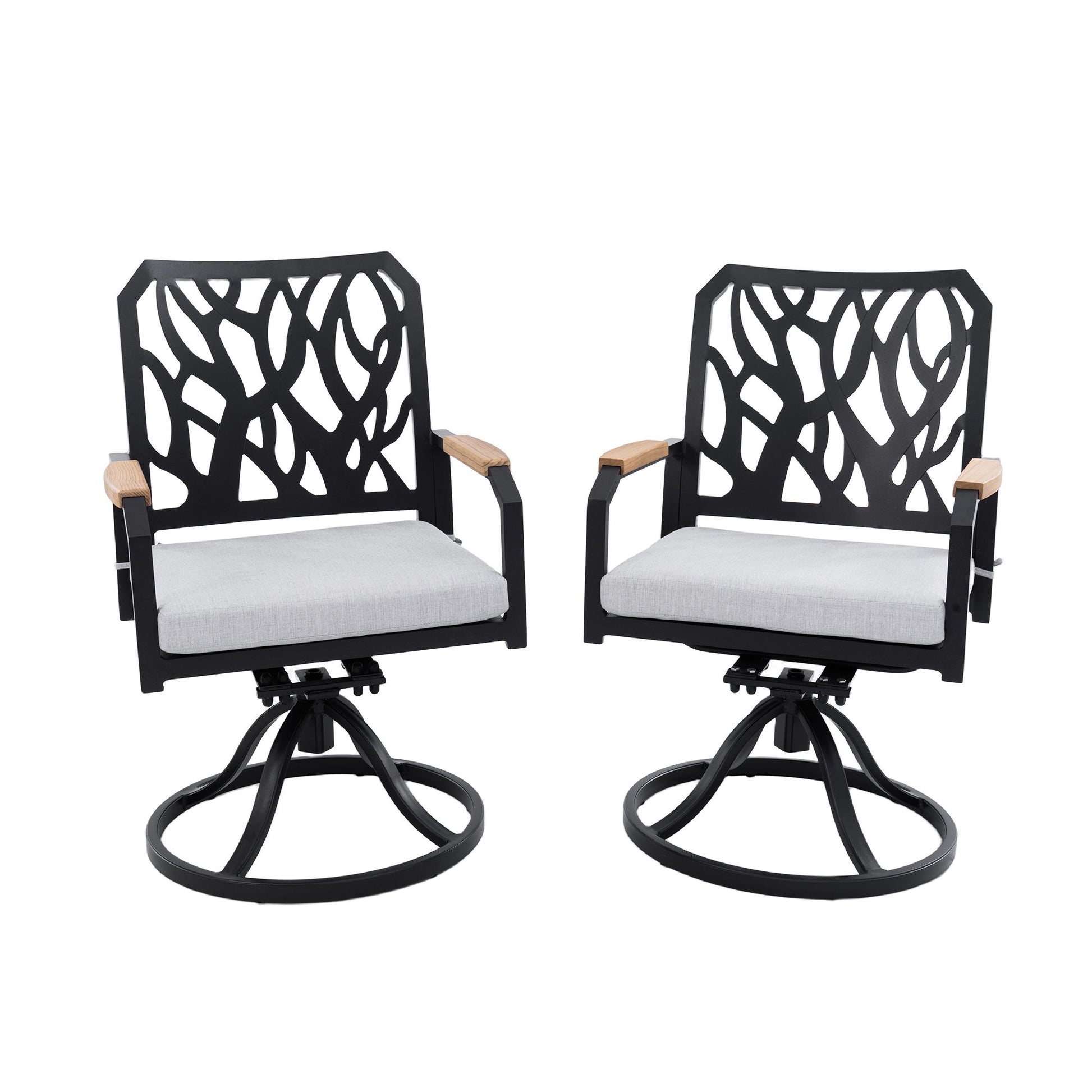 Outdoor Patio Swivel Rocker With Outdoor Grade Sunbrella Cushions, Branch Like Backrest (Set of 2) - Bourbon Brown