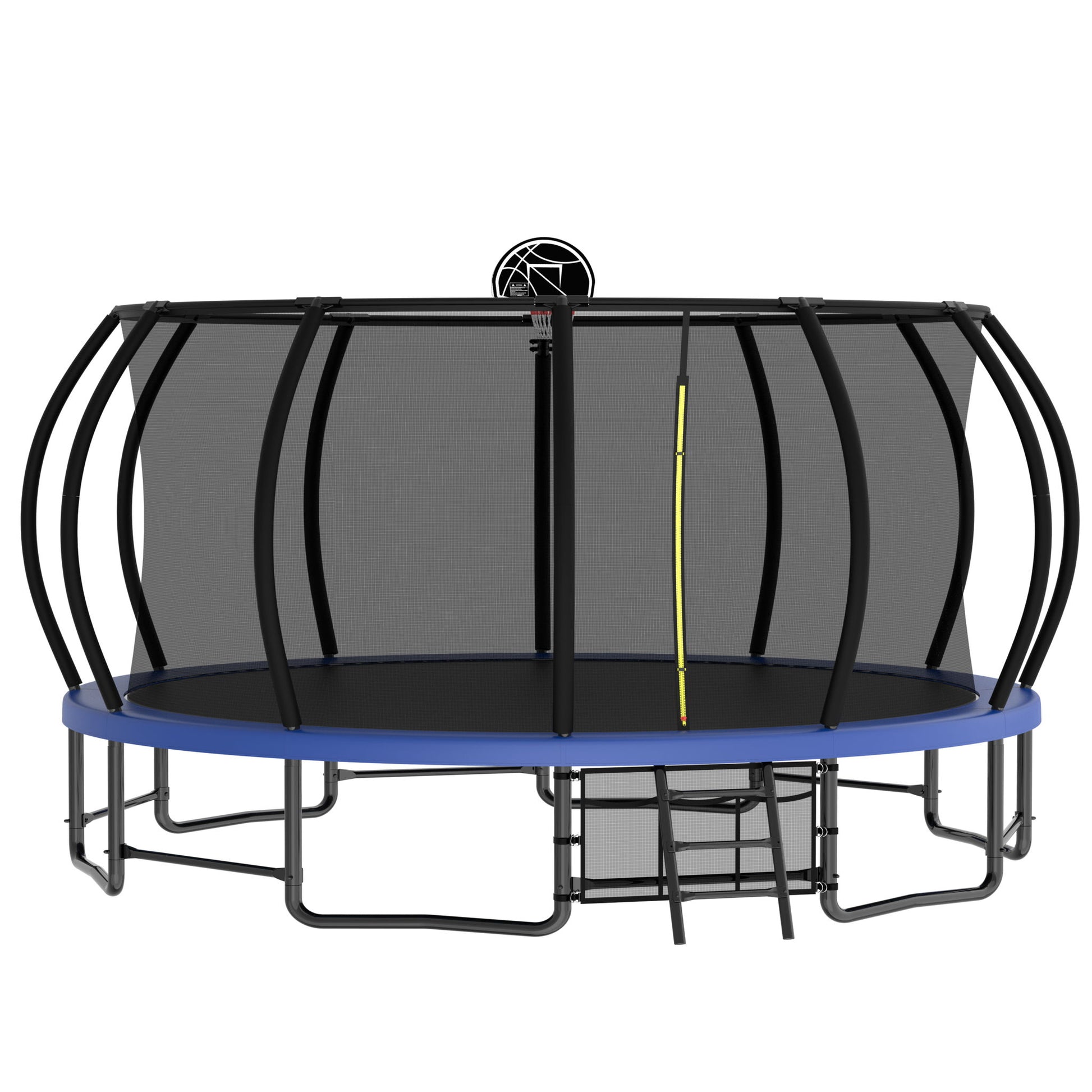Outdoor Trampoline For Kids And Adults, Pumpkin Trampolines With Curved Poles, Heavy Duty Trampoline Anti-Rust Coating Astm Approval - Blue