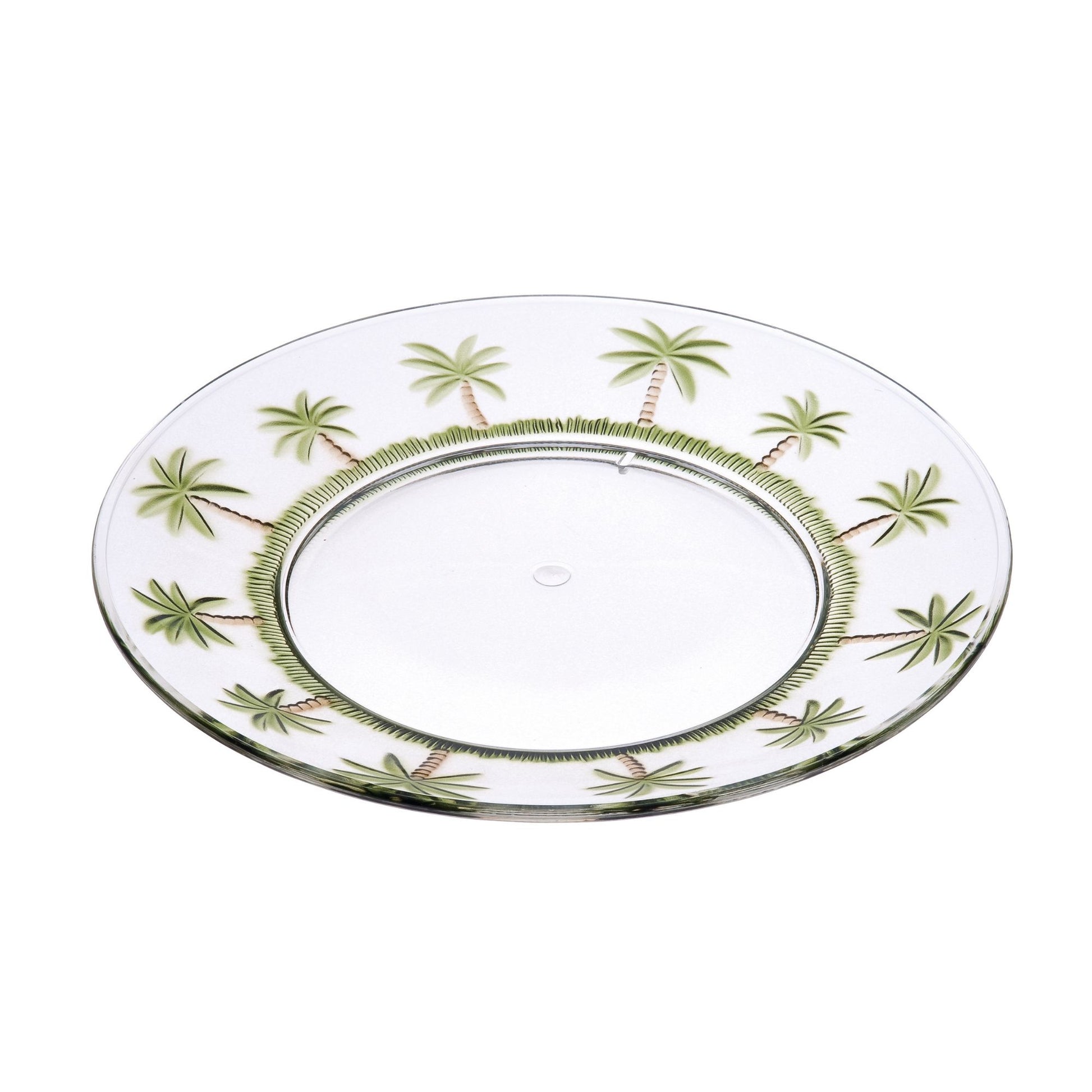 Palm Tree Design 9" Acrylic Dinner Plates (Set of 4) Crystal Clear Reusable Unbreakable Kitchen Plates Bpa Free Dishwasher Safe - Clear