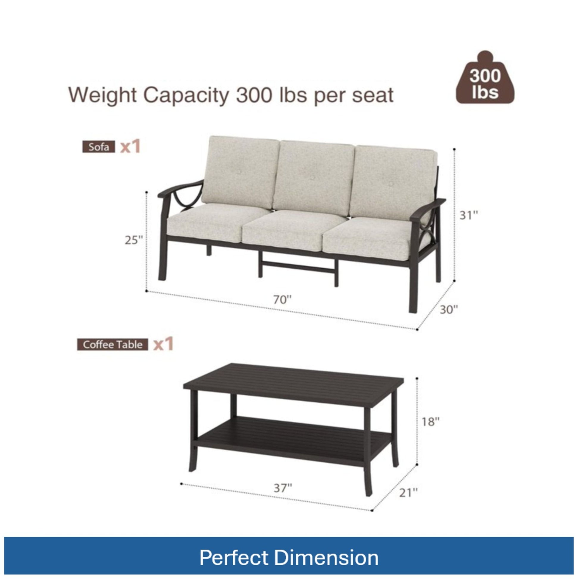 - Plush 4-Inch Thick Cushions: High-density foam provides supportive comfort and retains shape over time with water-repellent polyester covers