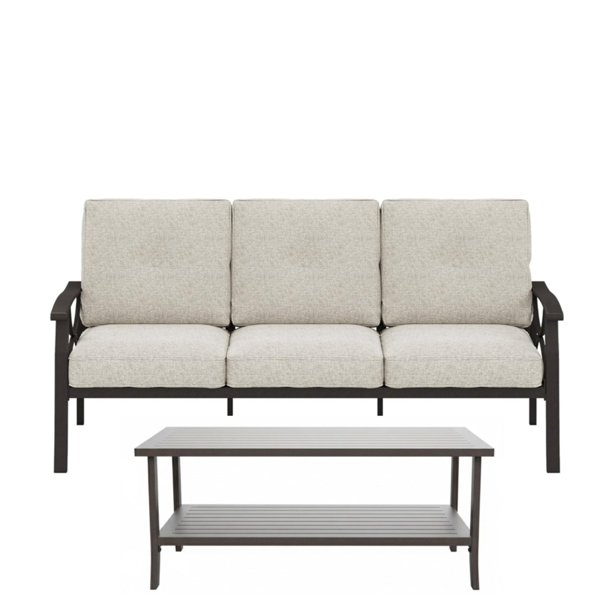 2 Piece Outdoor Patio Set With 3 Seat Sofa And Rectangular Coffee Table - Light Khaki / Beige