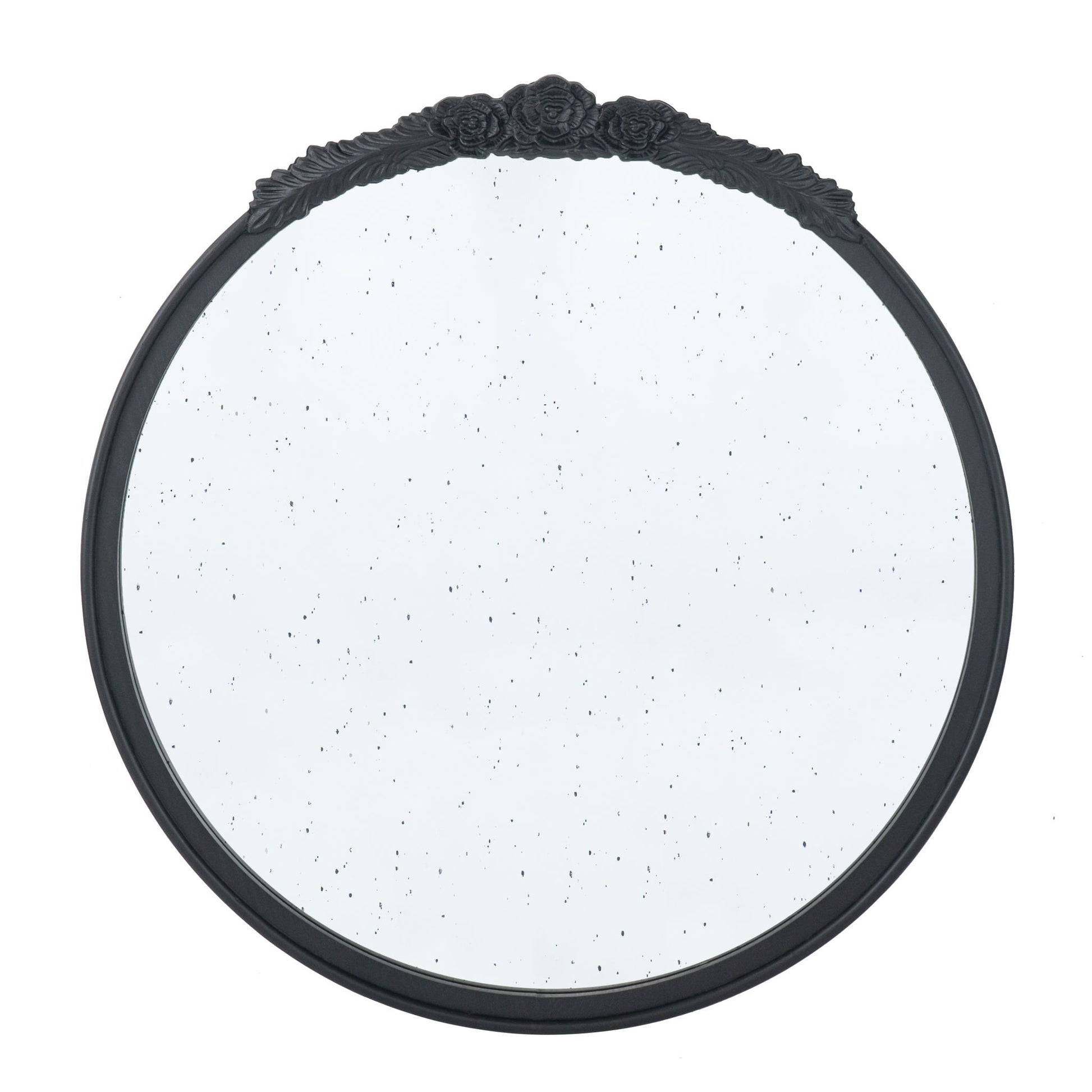 Round Hand Carved Rose Antique Mirror Frame, Wall Mirror For Live Space, Bathroom, Entryway Wall Decor - Black