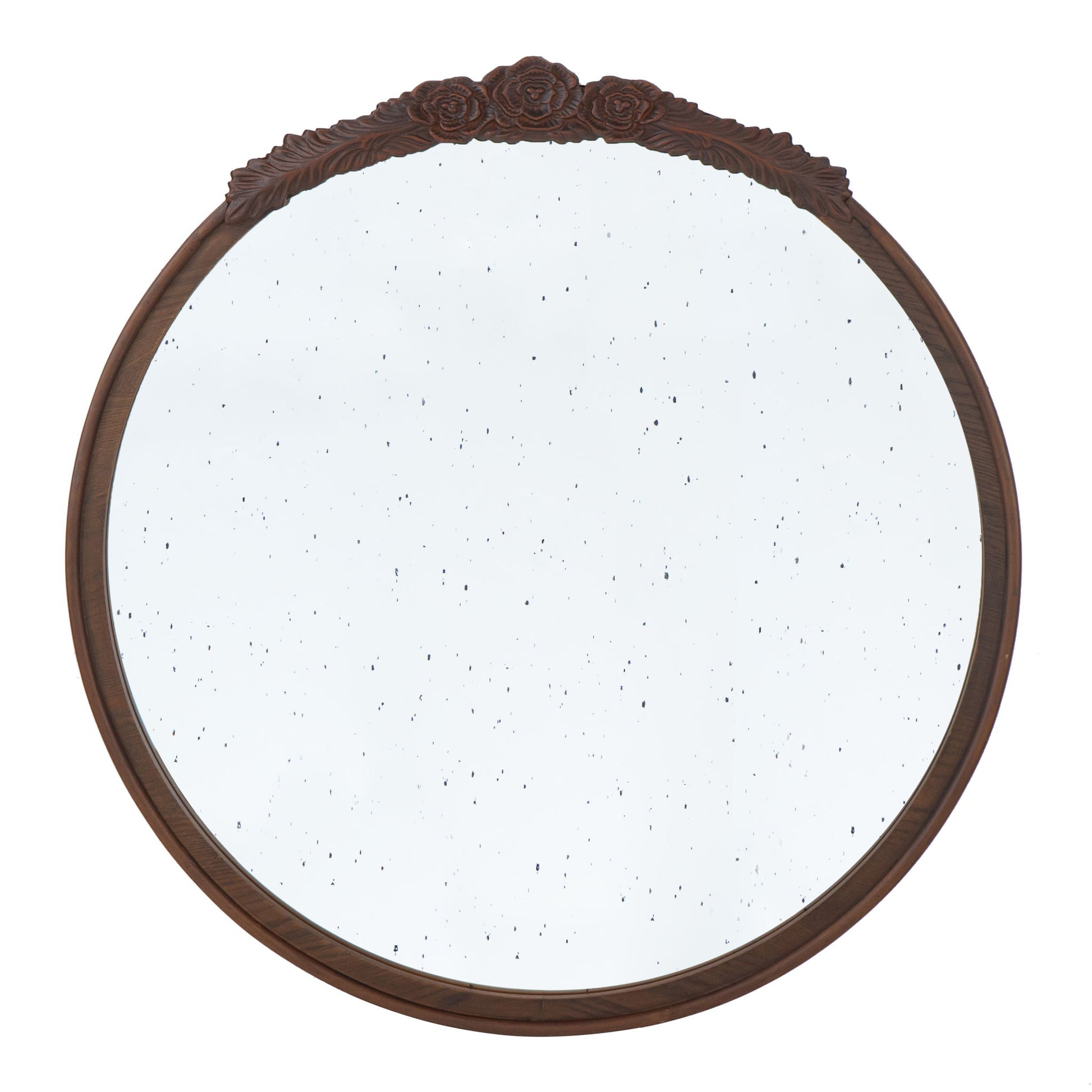 Round Hand Carved Rose Antique Mirror Frame, Wall Mirror For Live Space, Bathroom, Entryway Wall Decor - Brown