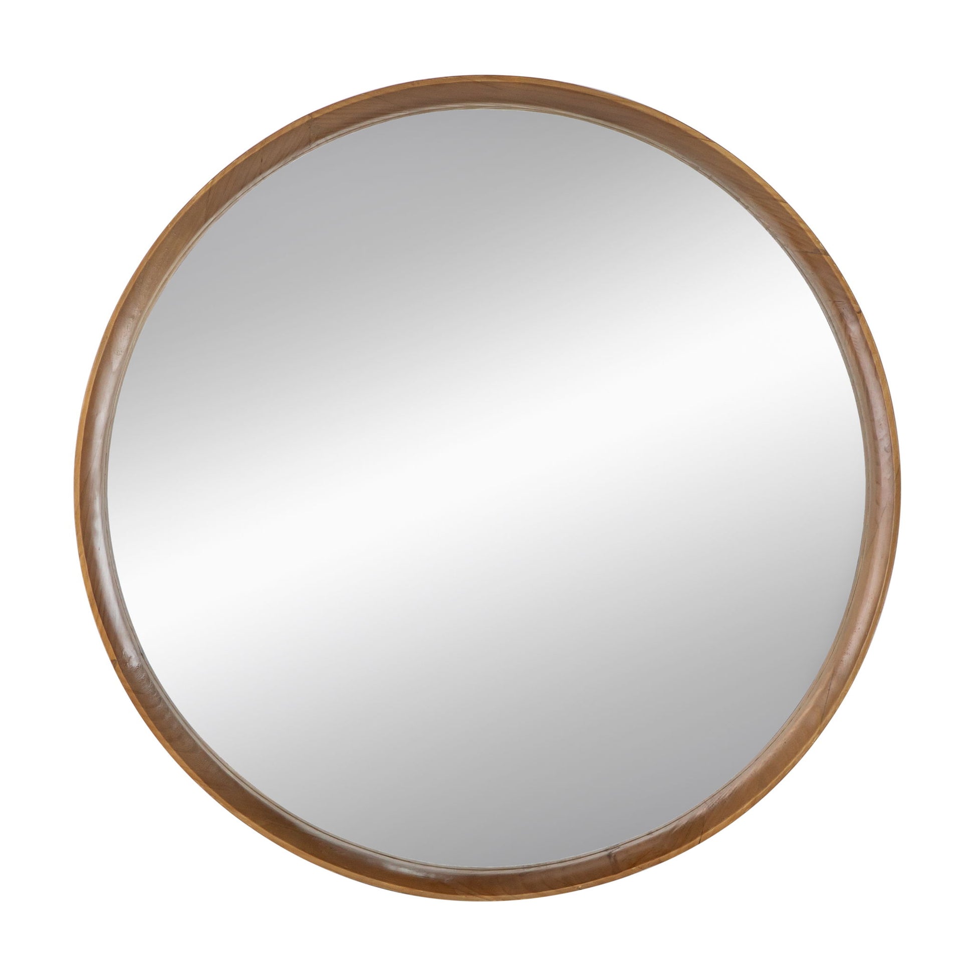 Round Pine Wood Mirror, Wall Mounted Mirror Home Decor For Bathroom Living Room - Brown