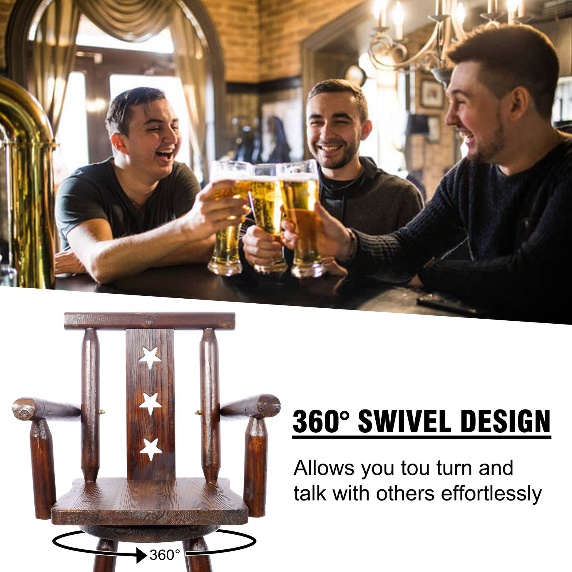Rustic Tall Bistro Chair Decorative Star Backrest And Footrest, Fir Wood, 4 Foot - Brown