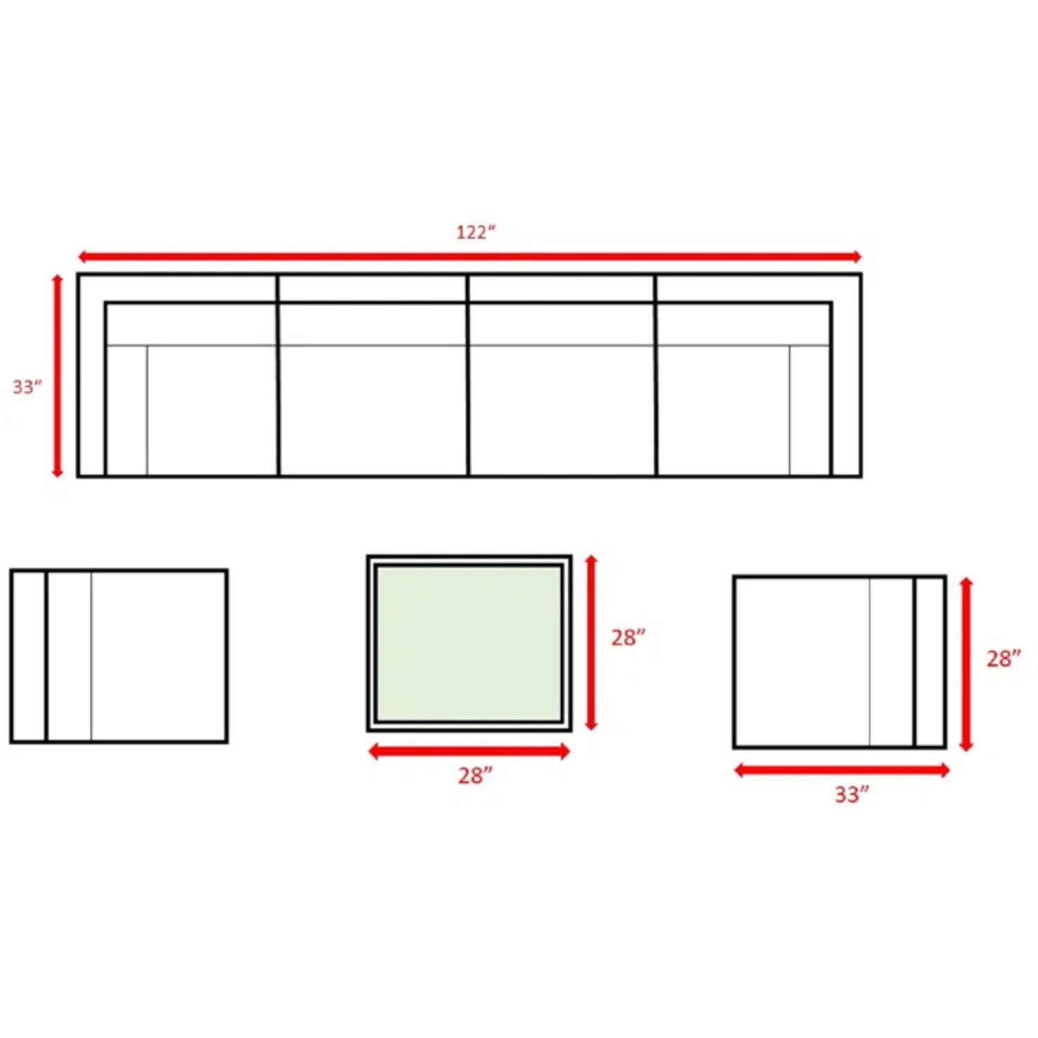 Outdoor Sectional Sofa Set With 11 Cushions, Glass Coffee Table, 4 Person - Brown