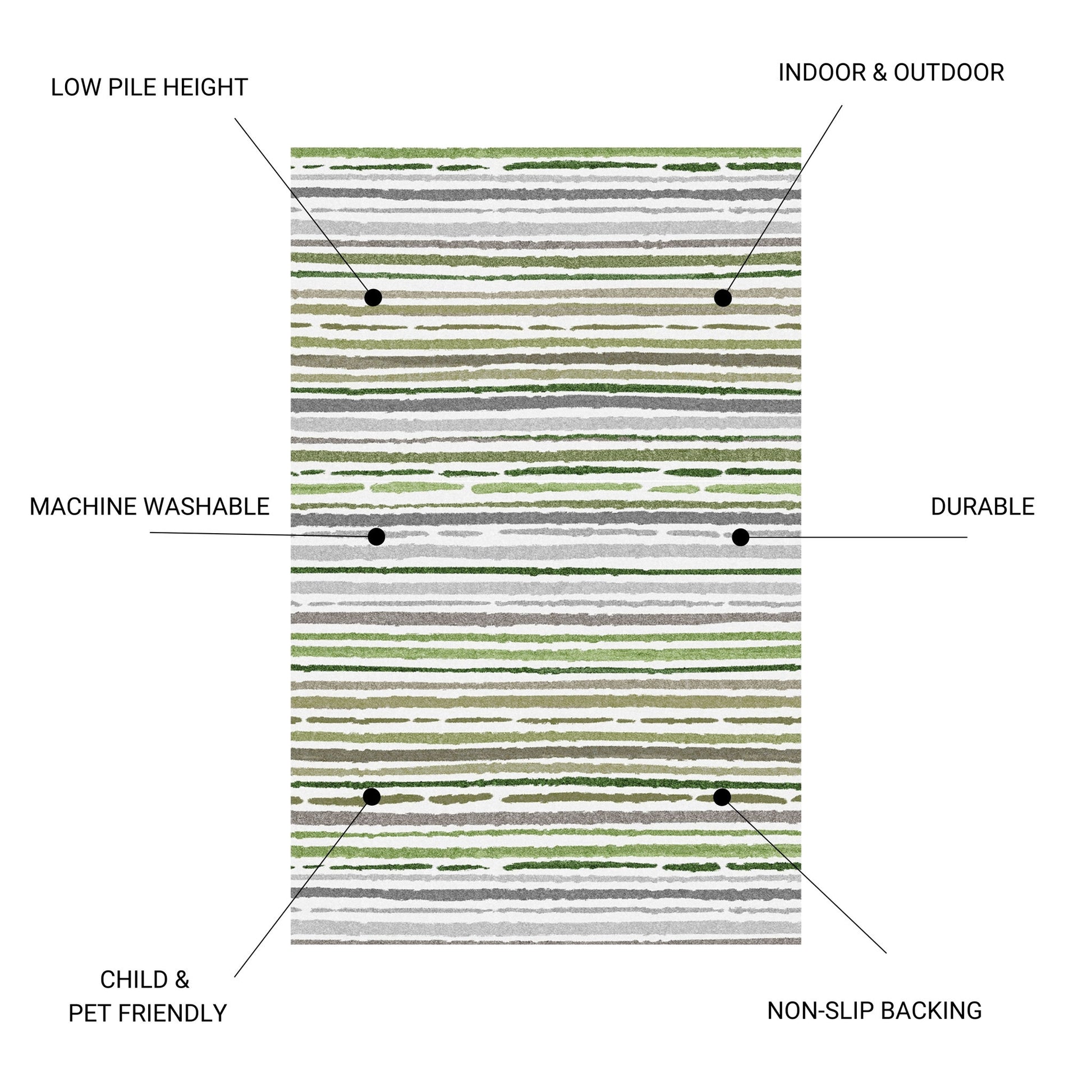 - Washable & Durable: This rug is designed for high-traffic areas and is both kid and pet-friendly. It is easy to maintain with regular vacuuming and is machine washable using a front-load washer on a cold cycle.