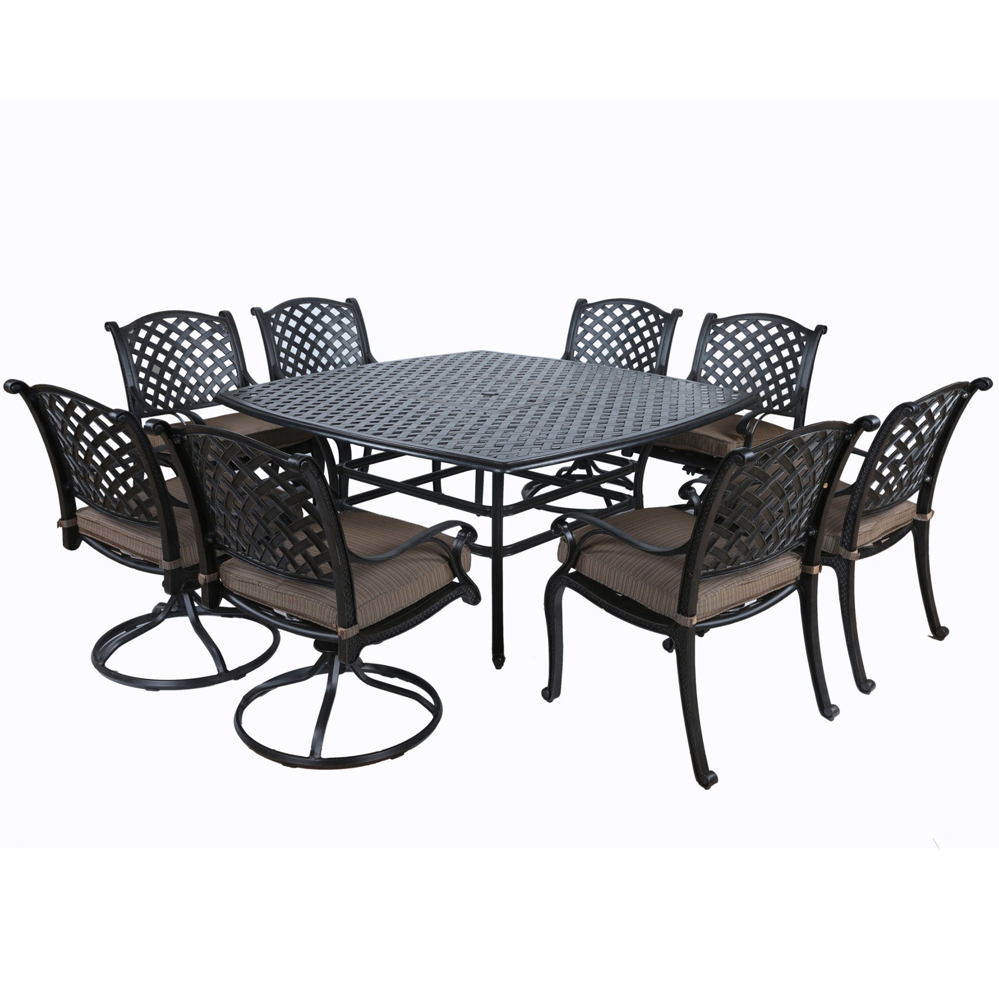 Square 8 Person 64" Long Aluminum Dining Set With Cushions - Antique Brown