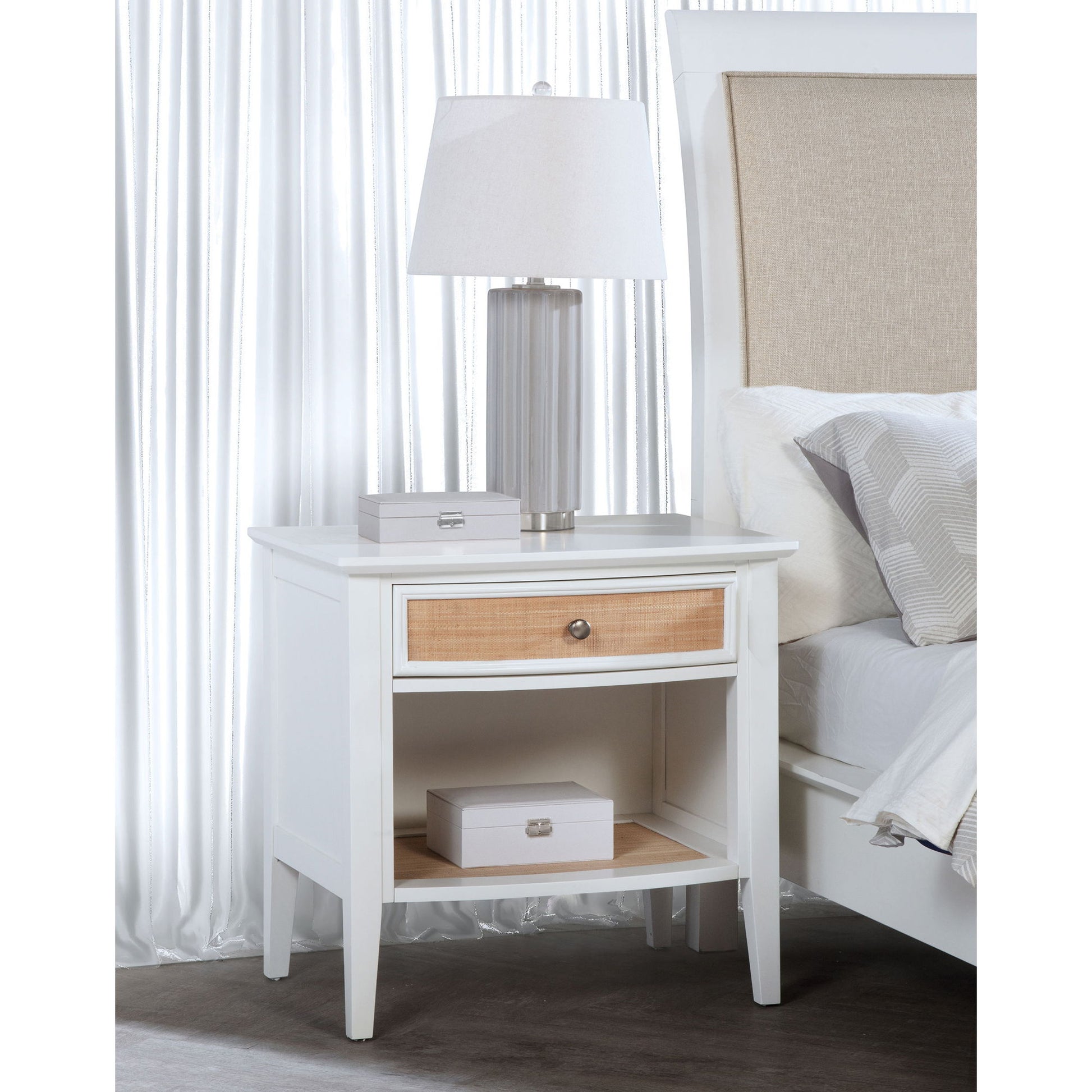 - Coastal Elegance: Fresh white finish with natural rattan details enhances modern bedroom aesthetics