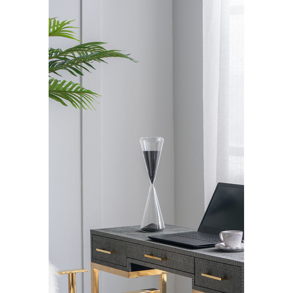 - Elegant Design: Eye-catching hourglass with black sand resting on a sleek crystal stand.