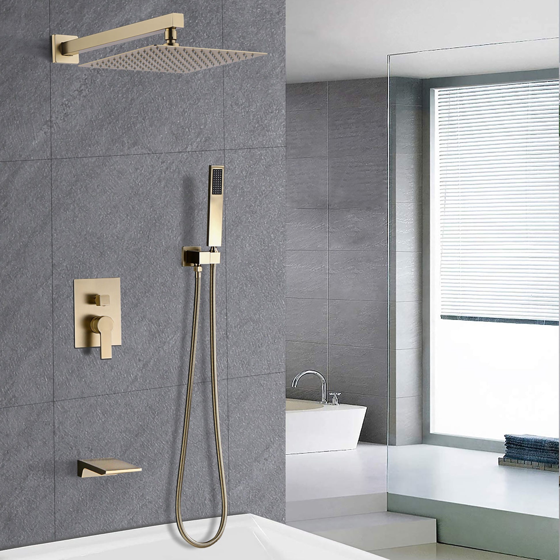 Luxury Bathroom Shower System With 12" Rain Shower Head Handheld Mixer - Brushed Gold