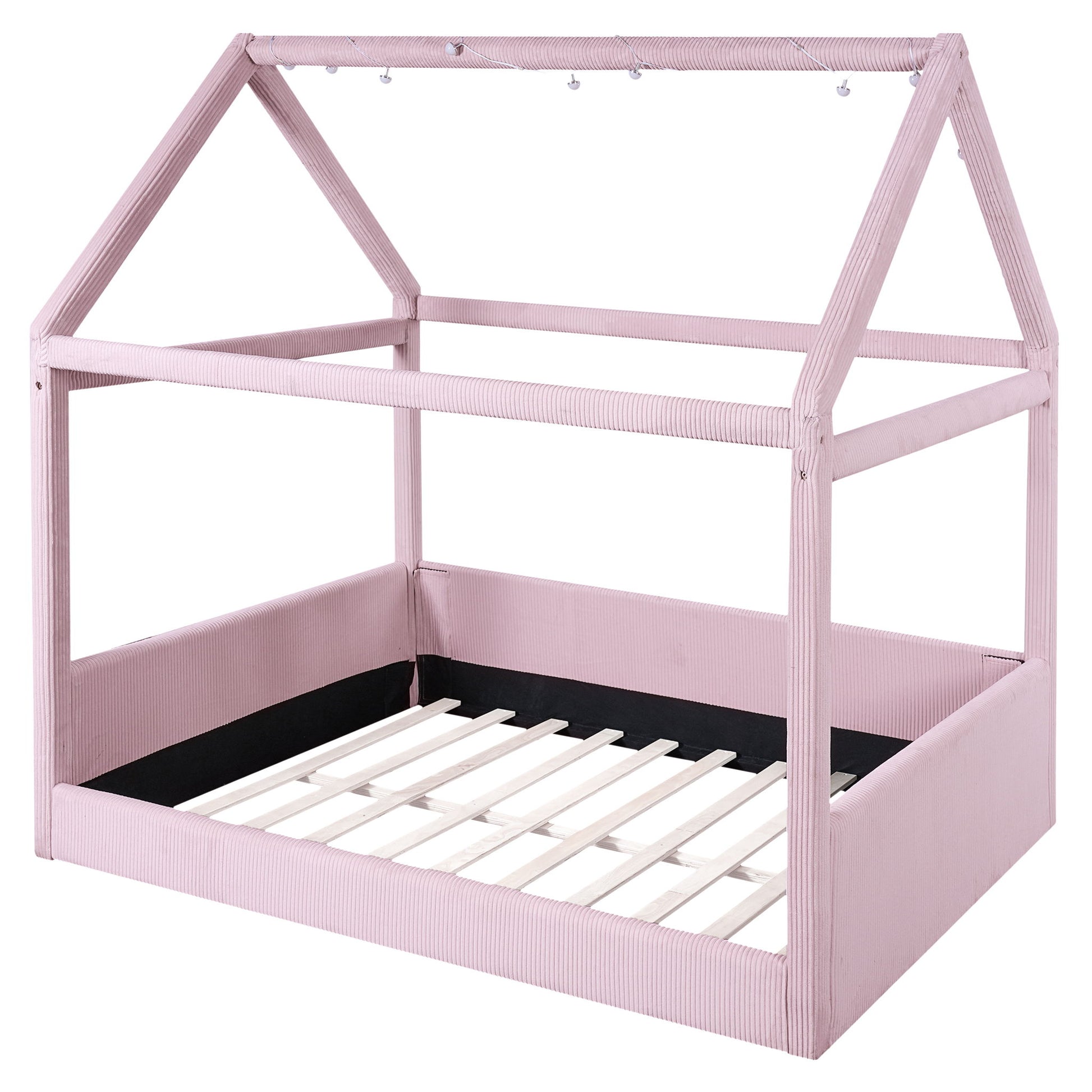 Full Size Upholstered House Style Daybed With LED Light Strips - Pink