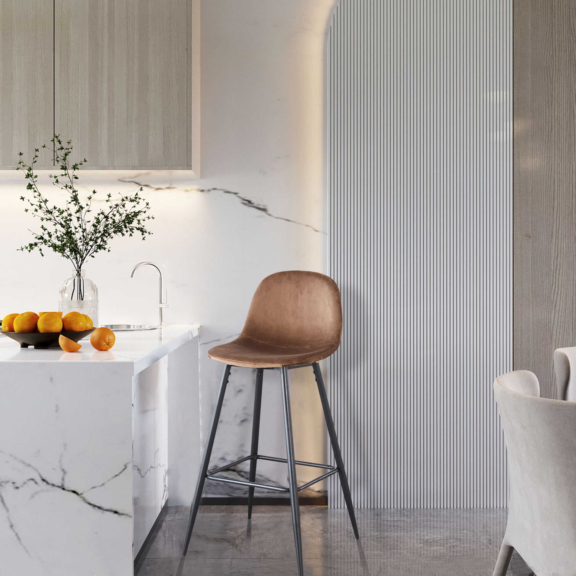 Bar Stools (Set of 2) Velvet Barstool Modern Counter Bar Height Chair With Back, Sturdy Metal Legs & Footrests, Island Stool For Kitchen Bar - Brown