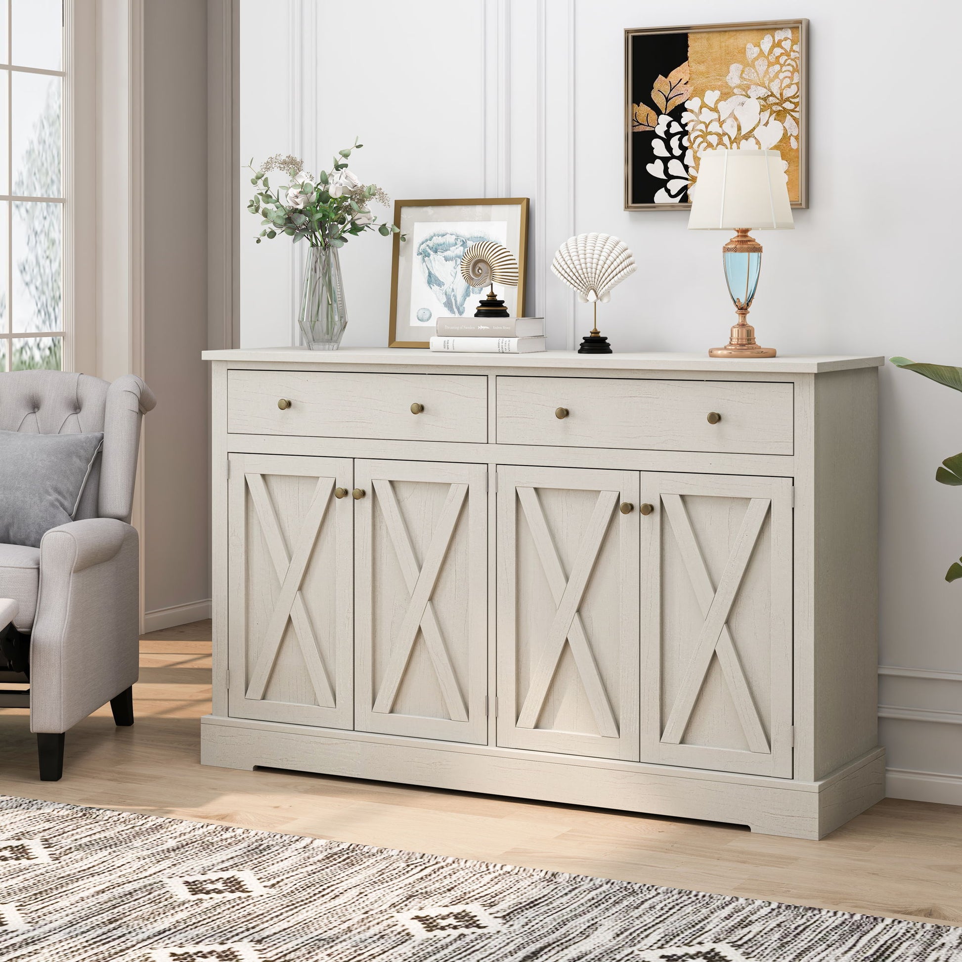 Vintage Sideboard With 2 Drawers And Four Doors For Living Room, Bedroom, And Kitchen, Room Storage Cabinet, Vintage - White