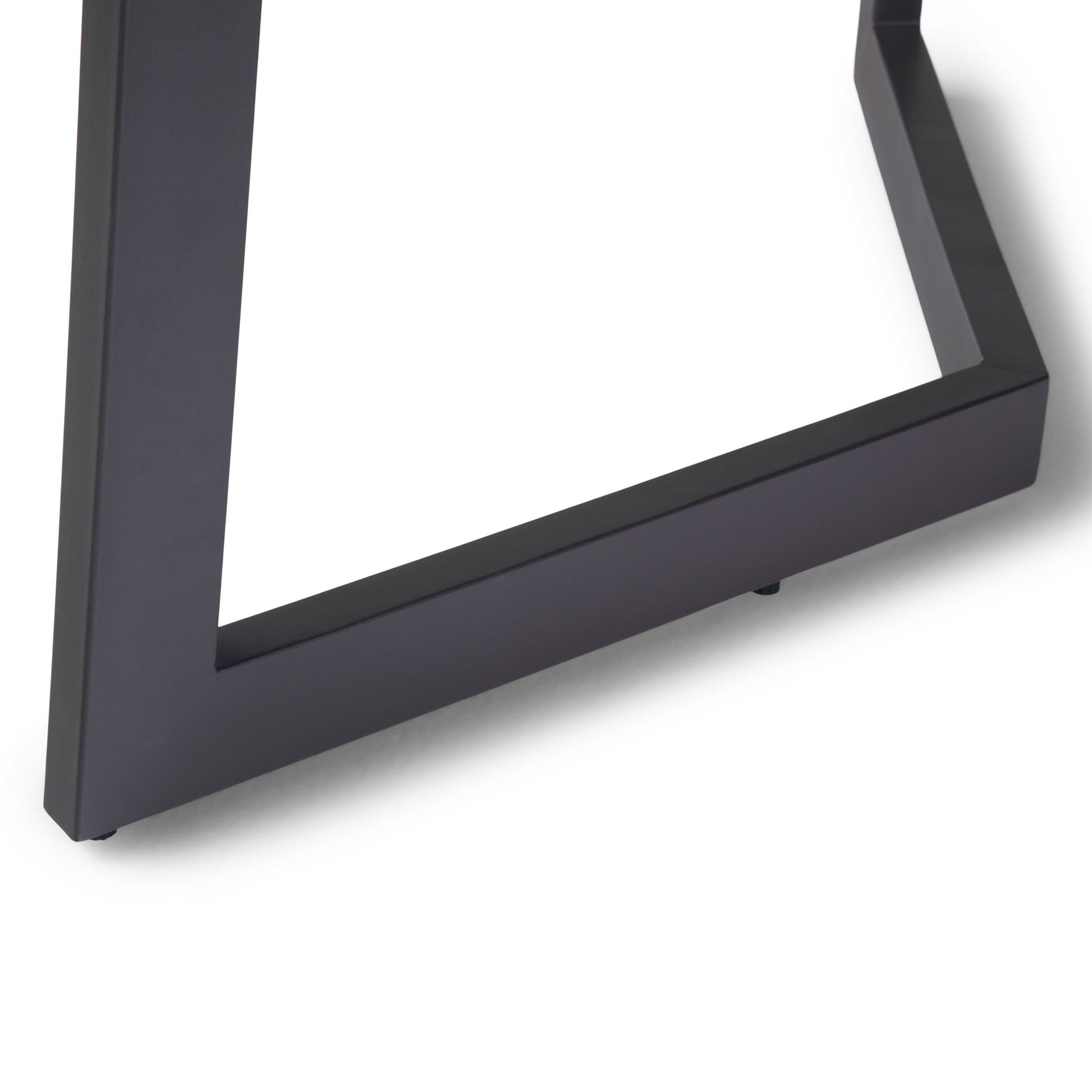 - Sturdy and stylish, the powder-coated metal legs feature geometric-inspired inverted bases.