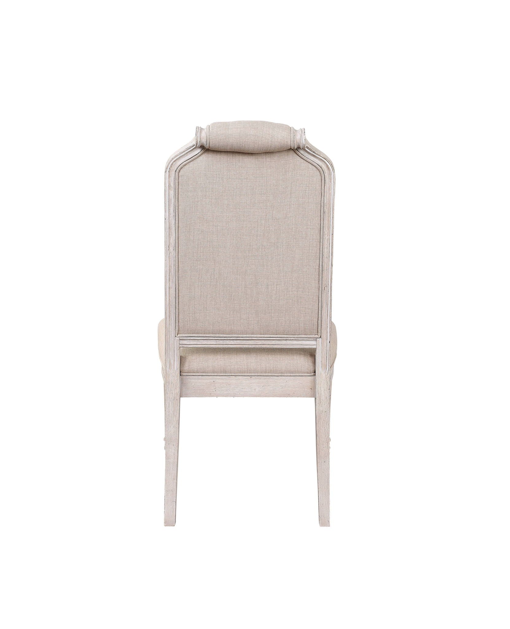 - Elegant Upholstery: This side chair features sophisticated fabric upholstery in an antique champagne hue, enhancing the elegance of any dining area.