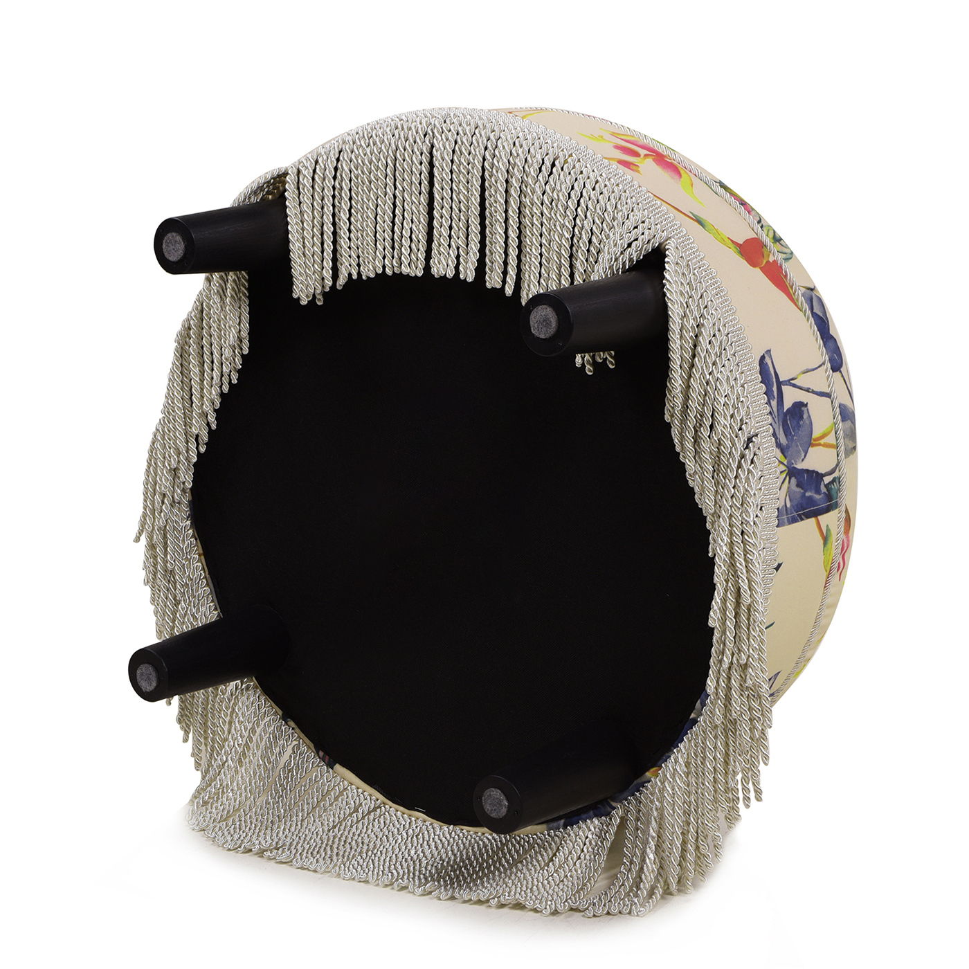 Yolanda - Tropical Floral Round Upholstered Accent Ottoman - Beige / Ivory